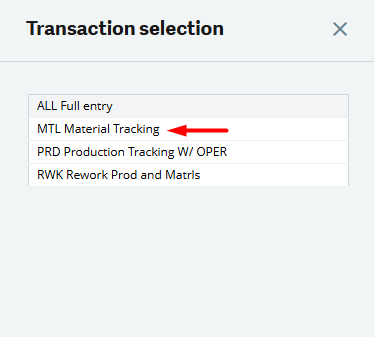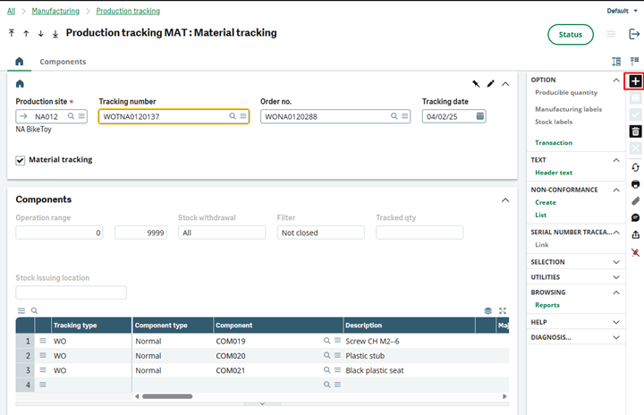 3. Start a new Material Tracking transaction by clicking the Plus button.